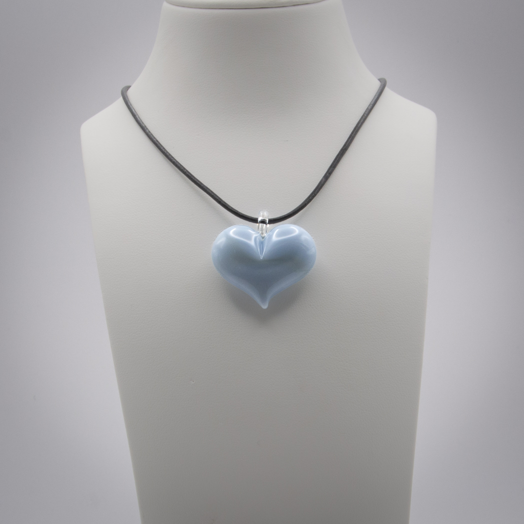 The heart comes with a leather band and its length can be adjusted from 70 cm to a choker length.