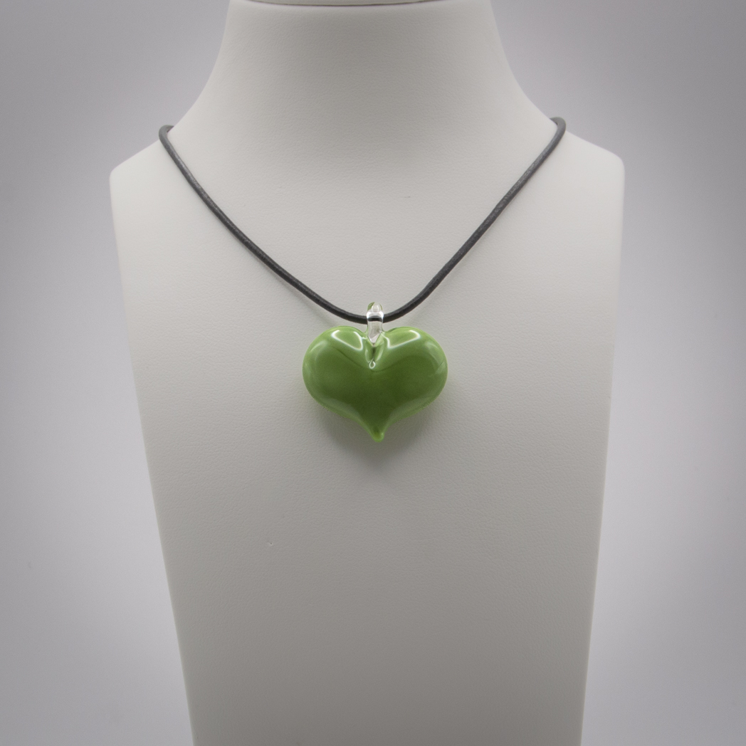 The heart comes with a leather band and its length can be adjusted from 70 cm to a choker length.