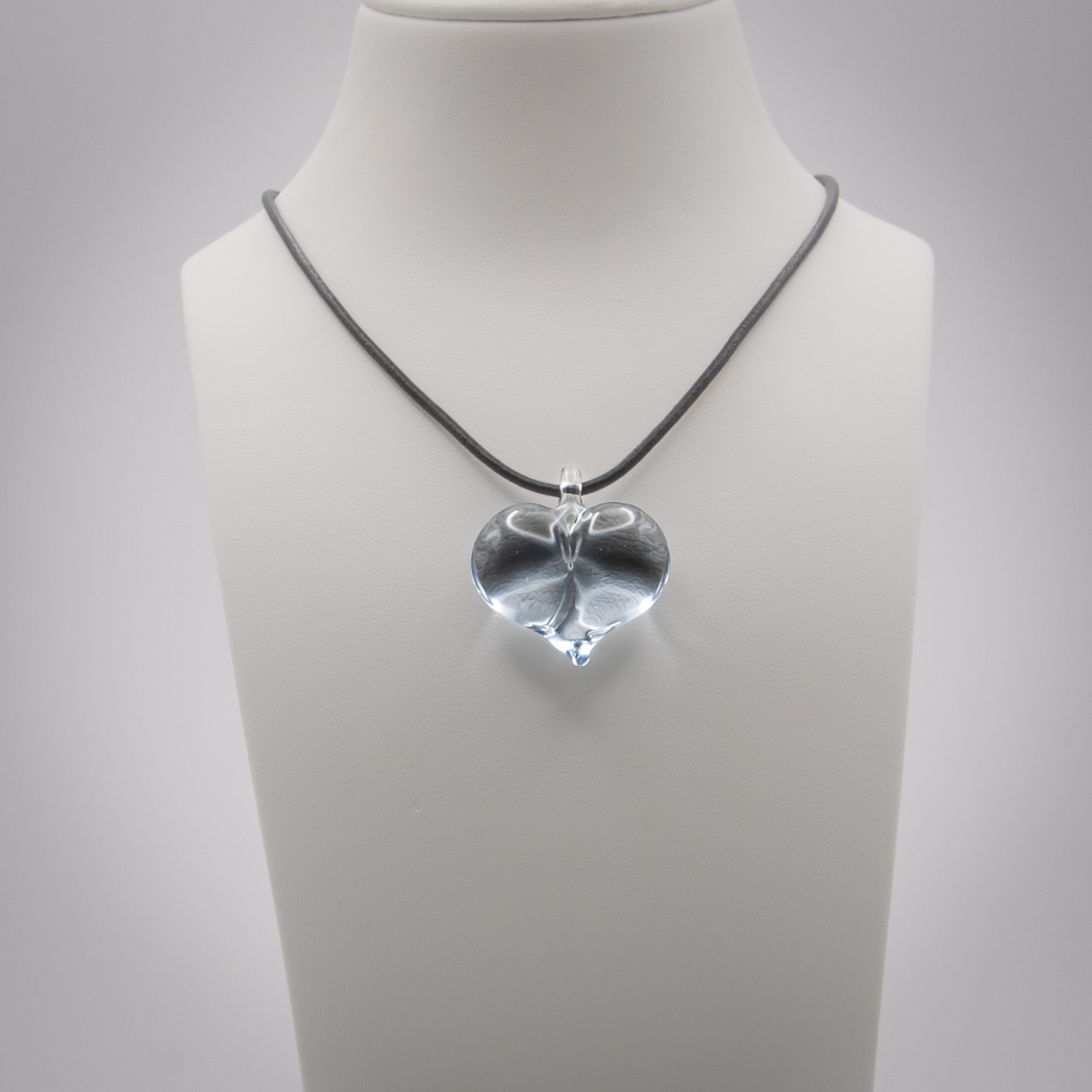 The heart comes with a leather band and its length can be adjusted from 70 cm to a choker length.