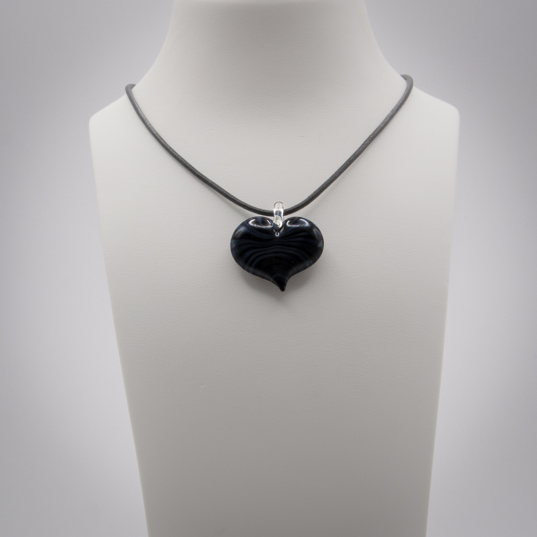 The heart comes with a leather band and its length can be adjusted from 70 cm to a choker length.