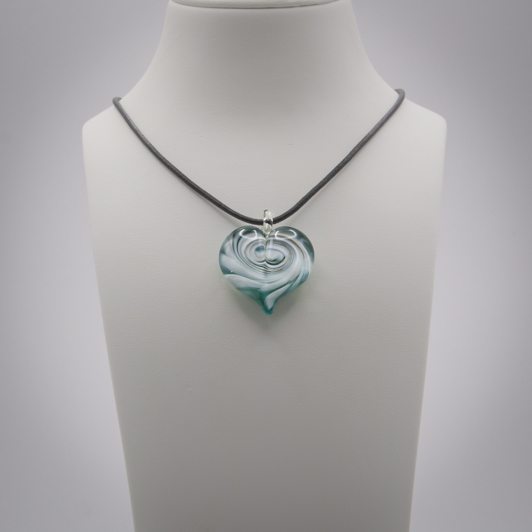 The heart comes with a leather band and its length can be adjusted from 70 cm to a choker length.