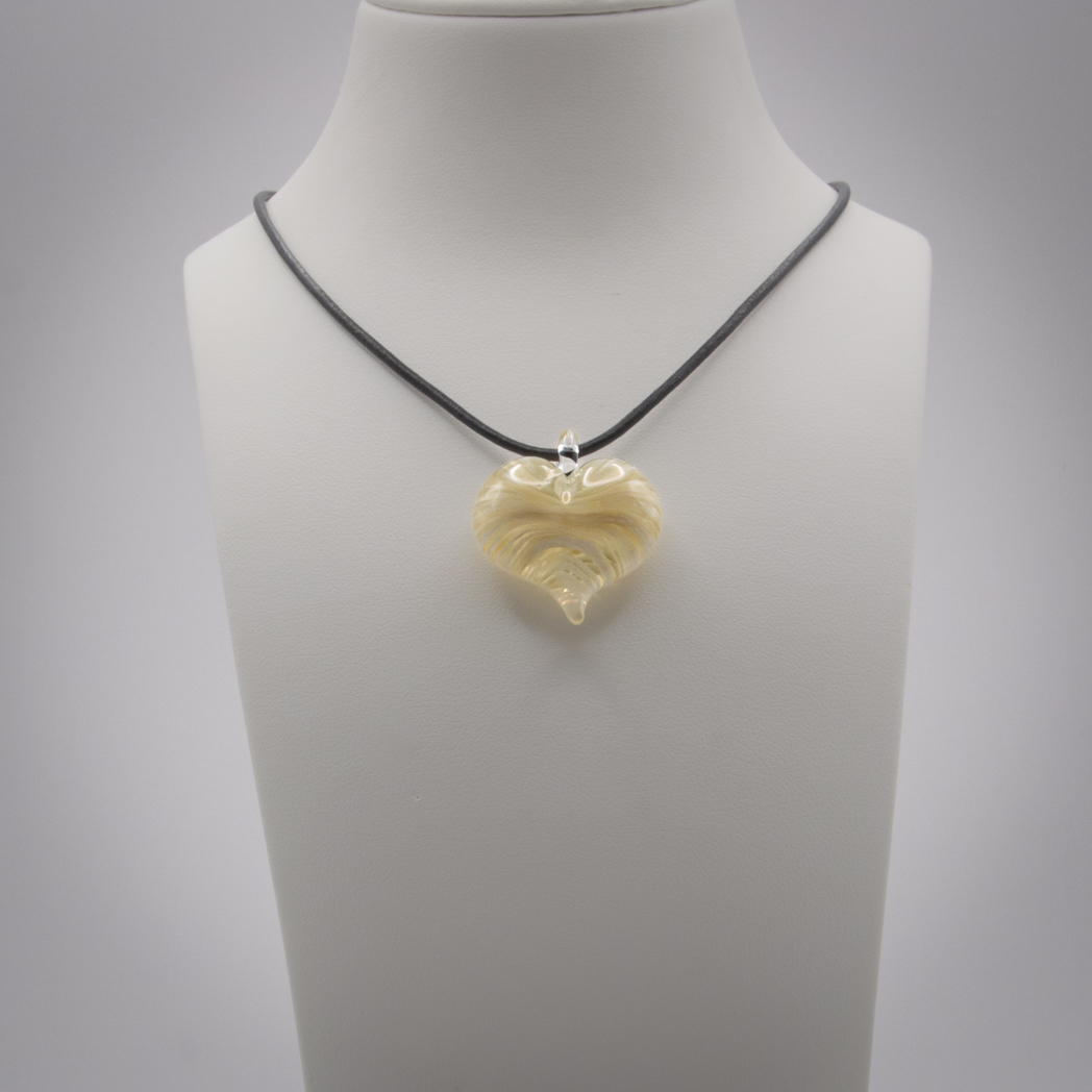 The heart comes with a leather band and its length can be adjusted from 70 cm to a choker length.