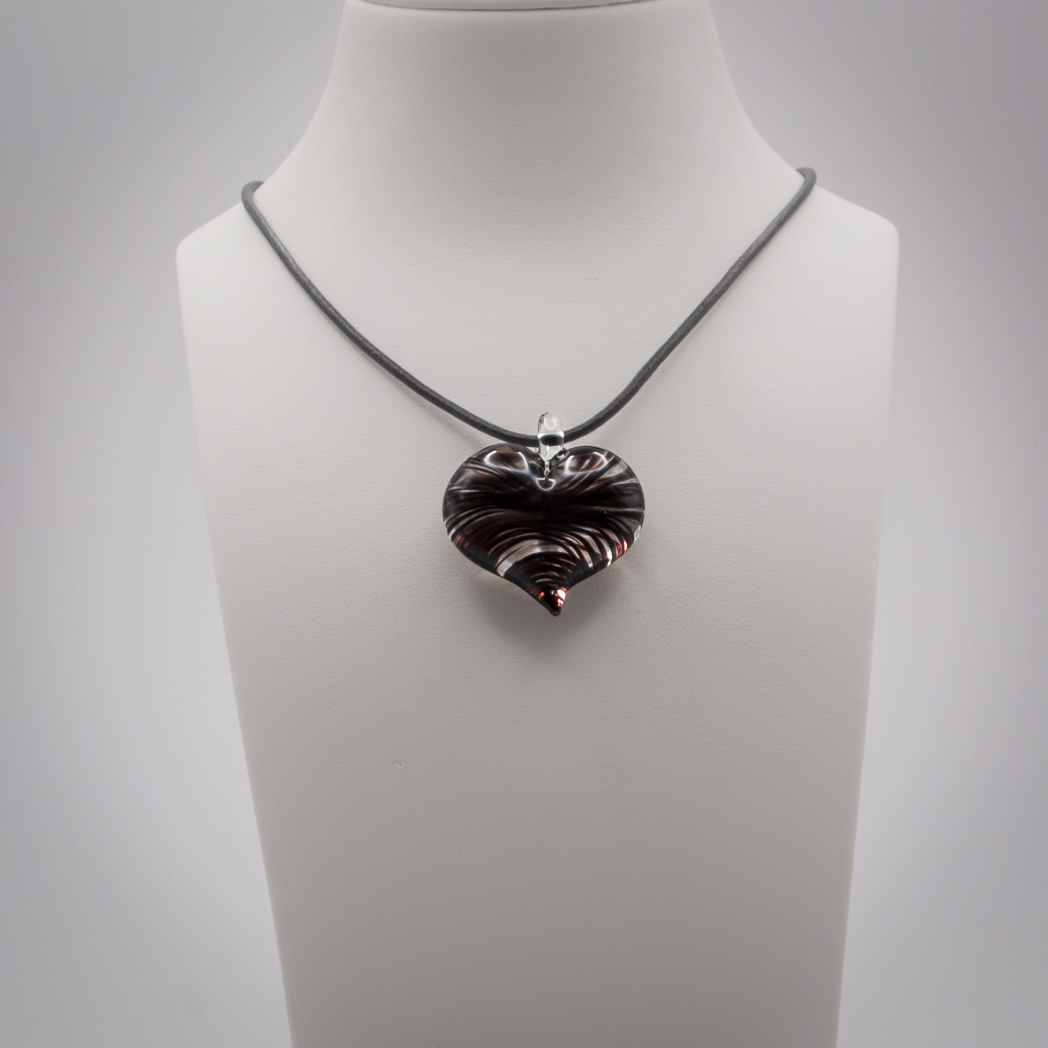 The heart comes with a leather band and its length can be adjusted from 70 cm to a choker length.