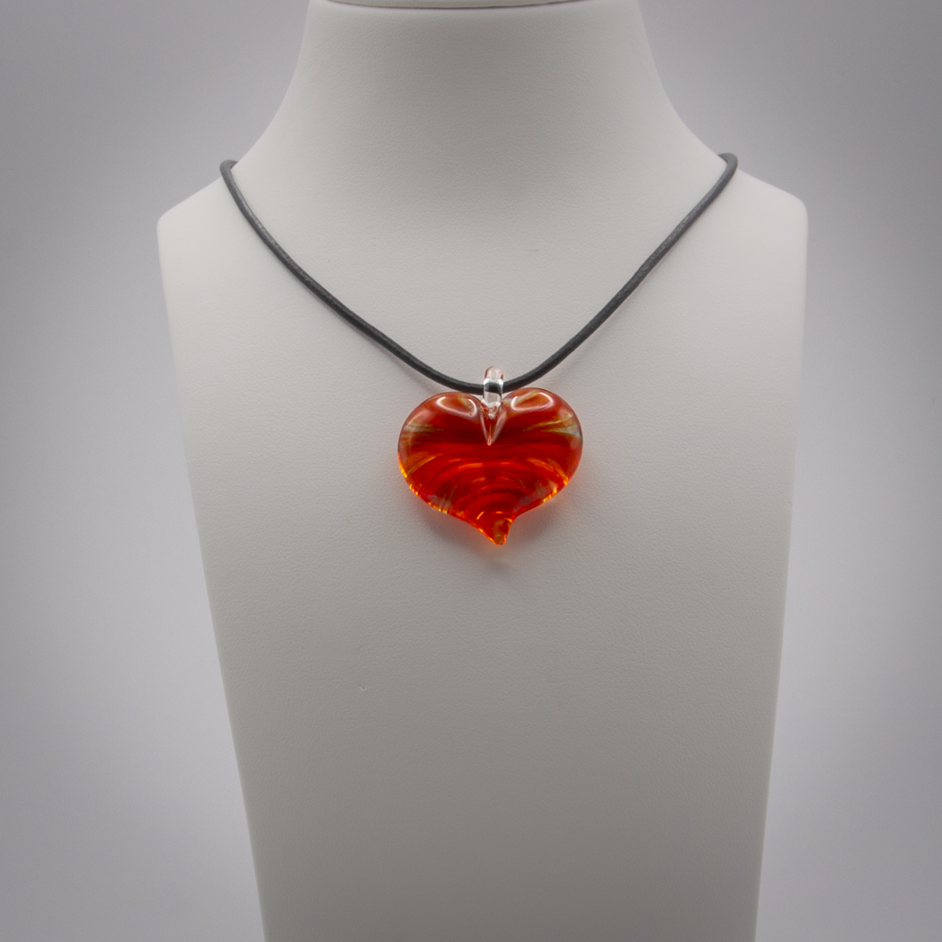 The heart comes with a leather band and its length can be adjusted from 70 cm to a choker length.
