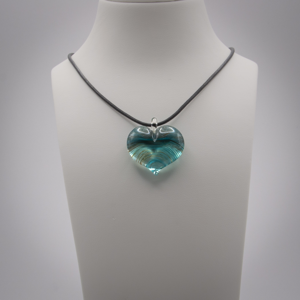 The heart comes with a leather band and its length can be adjusted from 70 cm to a choker length.