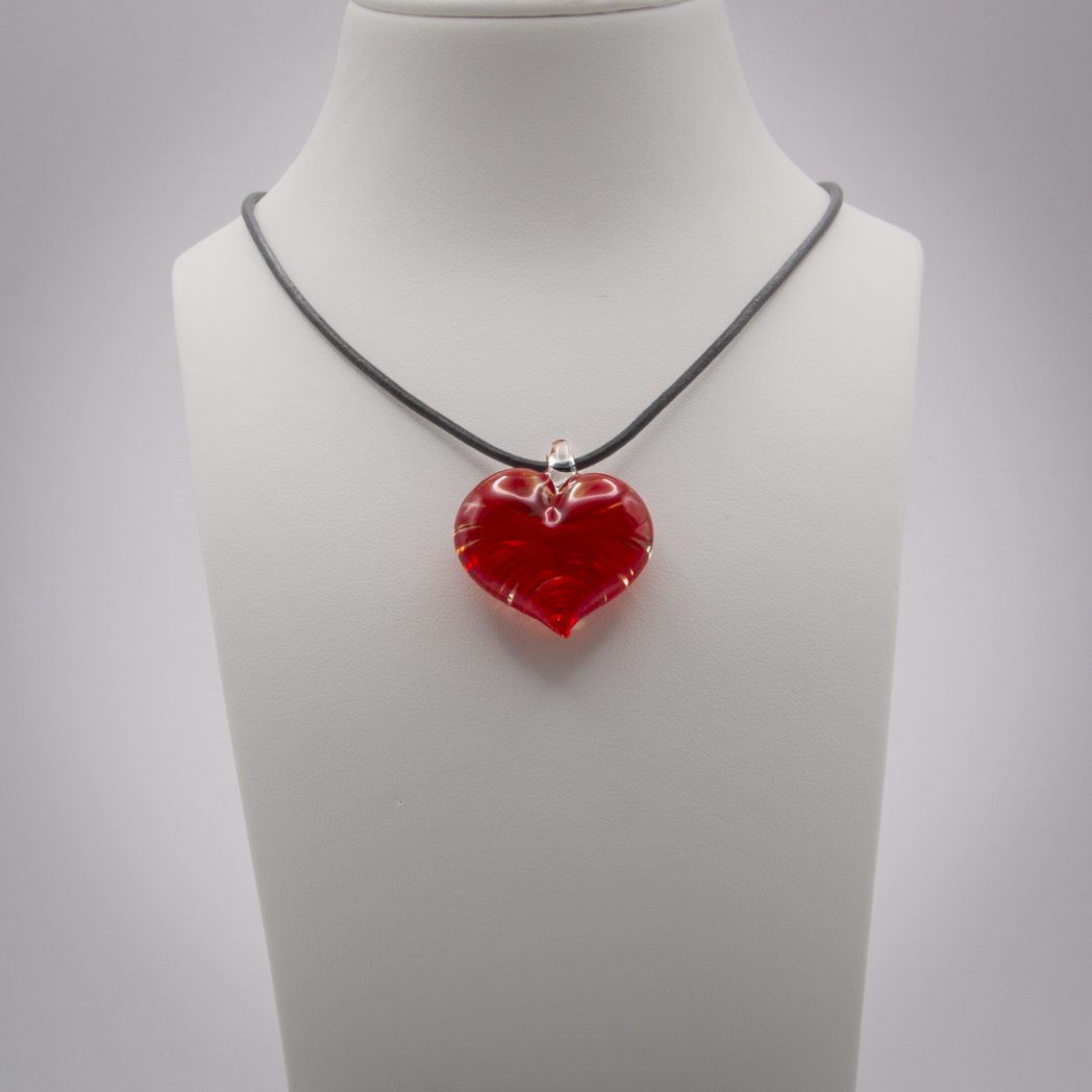 The heart comes with a leather band and its length can be adjusted from 70 cm to a choker length.