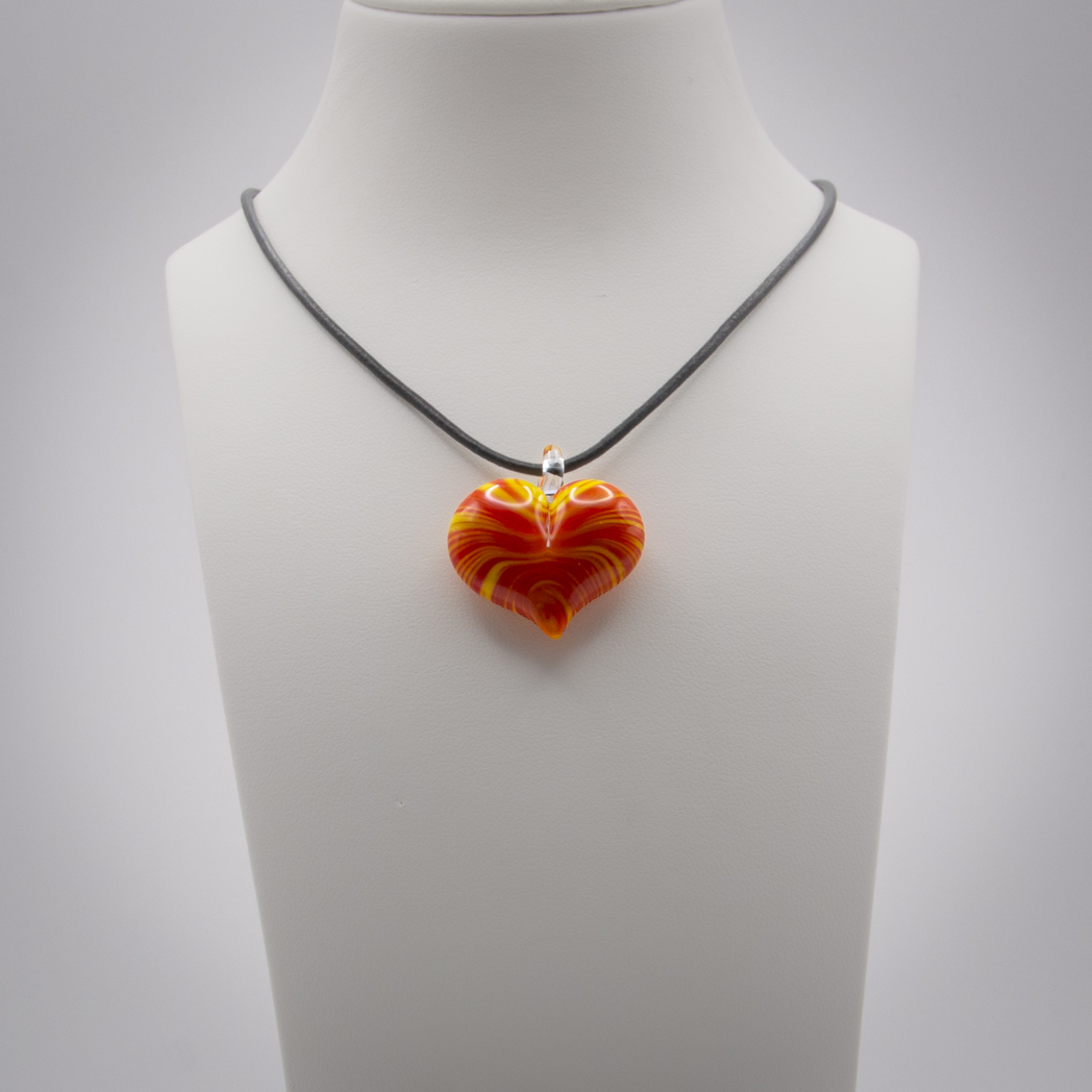 The heart comes with a leather band and its length can be adjusted from 70 cm to a choker length.