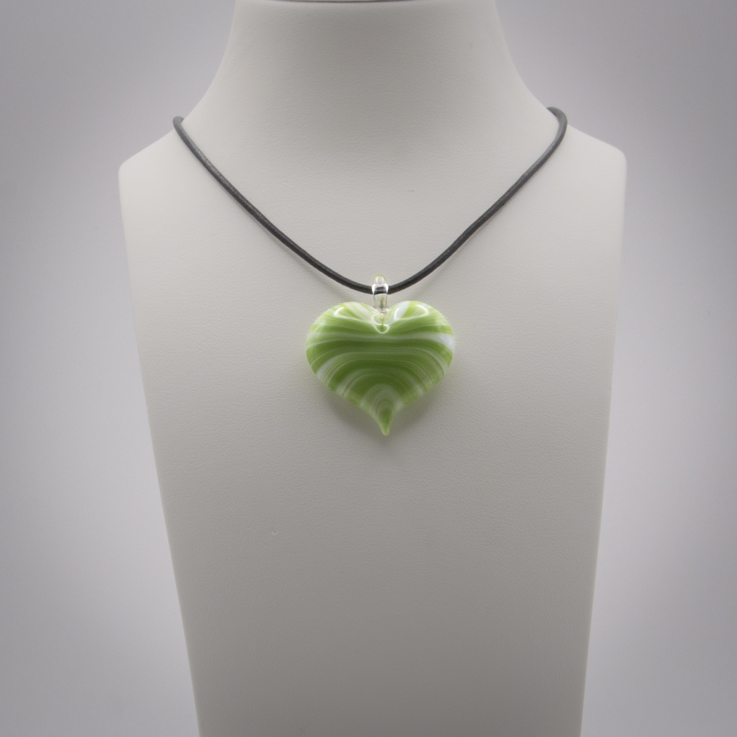 The heart comes with a leather band and its length can be adjusted from 70 cm to a choker length.